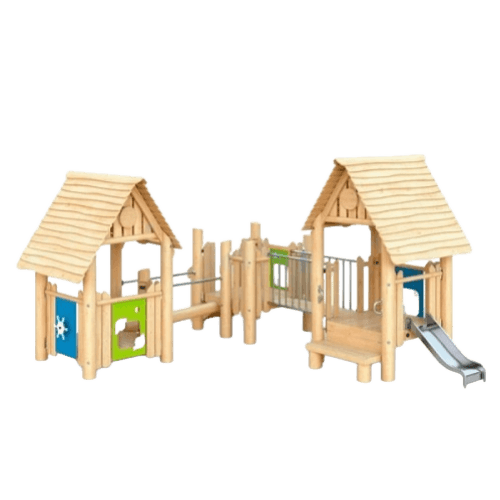 Габаритные размеры: не менее 6240х4800х3060мм. Материалы: дерево, металл. Предназначено для детей от 3 до 7 лет. Доставка: транспортные компании, собственный транспорт, самовывоз.